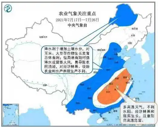 东北、华北北部以及西北春玉米种植区,是水肥需求量较大,且病虫害高发时期,未来一周降水较少,且温度较高,需及时补充灌溉和施肥,同时,加强田间巡查,防治粘虫、大斑病等病虫害。水稻主要防治水稻纹枯病、稻曲病、二代二化螟、稻飞虱,防治病虫时要避开高温,对症下药,确保作业人员人身安全和水稻防治效果。密切注意病虫测报信息,采用绿色防控技术,及时施药防治。