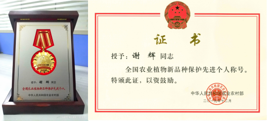 谢辉博士喜获农业农村部“全国农业植物新品种保护先进个人”表彰