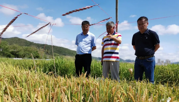2021年3月19日,中国工程院院士、中国水稻研究所所长胡培松和湖南金健种业董事长、湖南农业大学博导王建龙到天隆科技股份(国家粳稻中心)南繁基地考察交流,在天隆科技股份董事长杨飞和中心主任华泽田的陪同下,一起查看了公司(中心)优良品种和优异育种资源的田间长势情况。