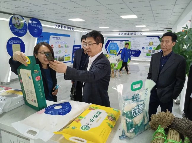 戴局长一行查看了小站稻良种生产车间,参观了水稻科普展厅,品尝了优质小站稻品种天隆优619和津特6的米饭,领导同志们一致给予了高度好评。东丽博士向戴局长一行介绍了公司(中心)与中化农业、益海嘉里等大型龙头企业合作开展小站稻全产业链建设的工作成效,通过统一供种、科学种植、规范加工、全程溯源模式生产的“百年津沽小站稻”已经在华润万家、人人乐等全国各大商超和电商平台上市。现场,戴局长拿出手机体验了“百年津沽小站稻”的产品溯源过程,通过扫描二维码,品种、种植地块、种植年份、加工场地、质量等级等信息清晰的显示出来,确保国民买到的小站稻产品新鲜、安全、美味、保真。