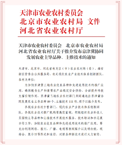 为加快京津冀三地农业优良品种和先进适用技术的推广应用,确保粮食生产和重要农产品稳定安全供给,全面提升科技支撑引领作用,京津冀三地农业农村部门共同遴选出京津冀协同发展农业主导品种89个、主推技术111项,其中,天津天隆科技股份公司、国家粳稻中心选育的天隆优619列入农业主导品种。