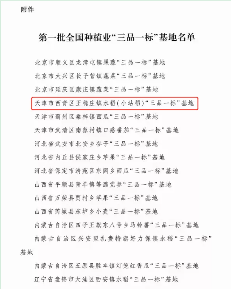 日前,农业农村部办公厅公布的第一批全国种植业“三品一标”基地清单,天津市西青区王稳庄镇水稻(小站稻)“三品一标”基地成功上榜,标志着国家粳稻工程技术研究中心育繁种基地的品质好米获得了国家认证。“三品一标”即品种培优、品质提升、品牌打造和标准化生产,通过“三品一标”认证,是农产品迈向安全优质的重要一关。